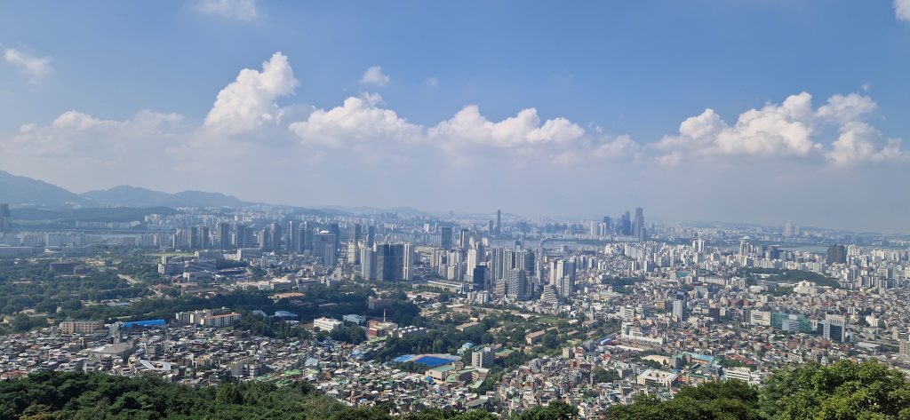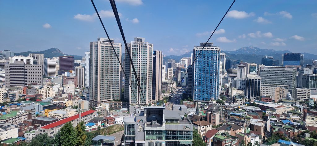 Als erstes fuhr ich mit der Gondelbahn auf den Hausberg von Seoul, den Namsan. Von dort hatte man eine schöne Rundumsicht auf die Stadt.